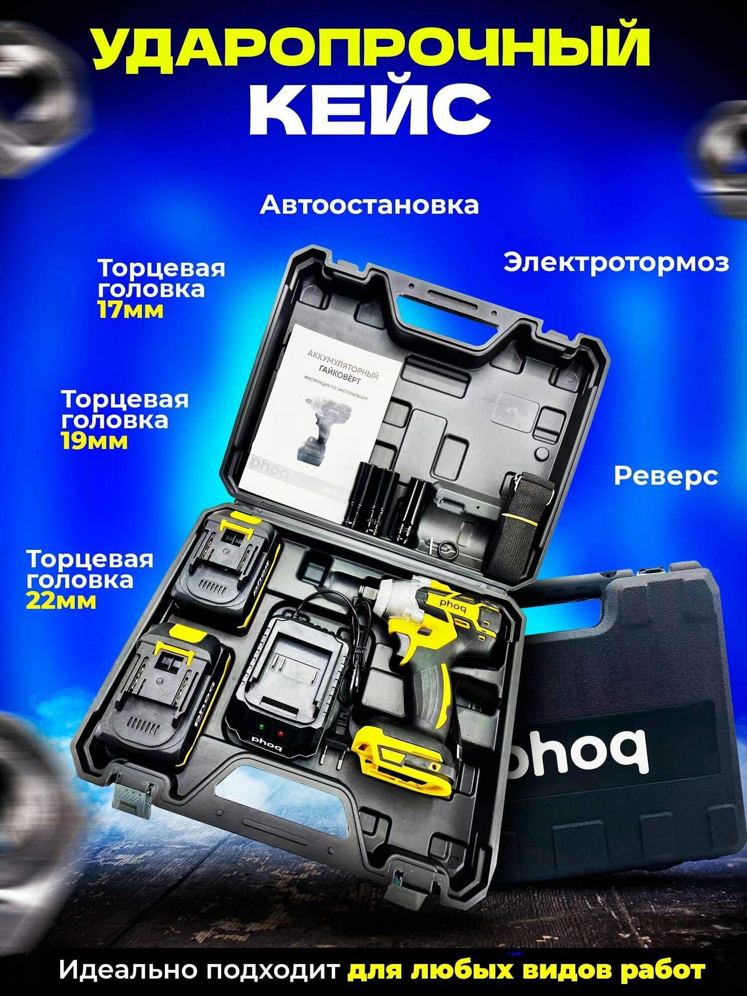 Отзывы на Гайковерт бесщеточный ударный аккумуляторный PHOQ 2 скорости, 1600 об/мин,