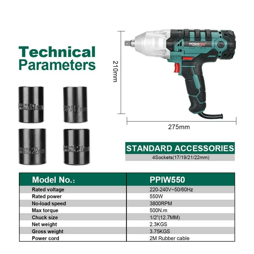 Гайковерт электрический ударный PosenPro 550 Вт 500нм информация:
