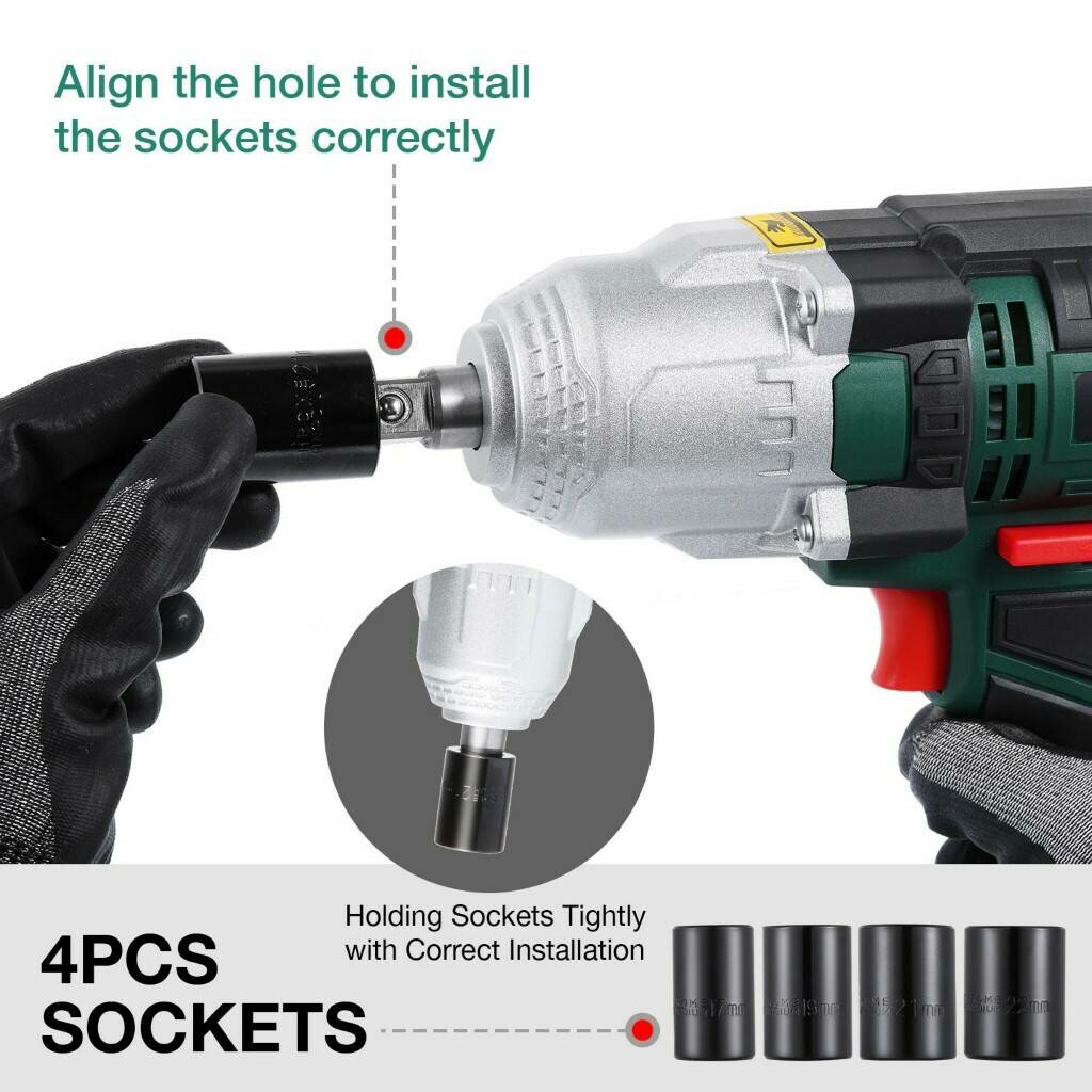 | Комплектация | Гайковерт, кейс, 4 головки (17/19/21/22 мм). |