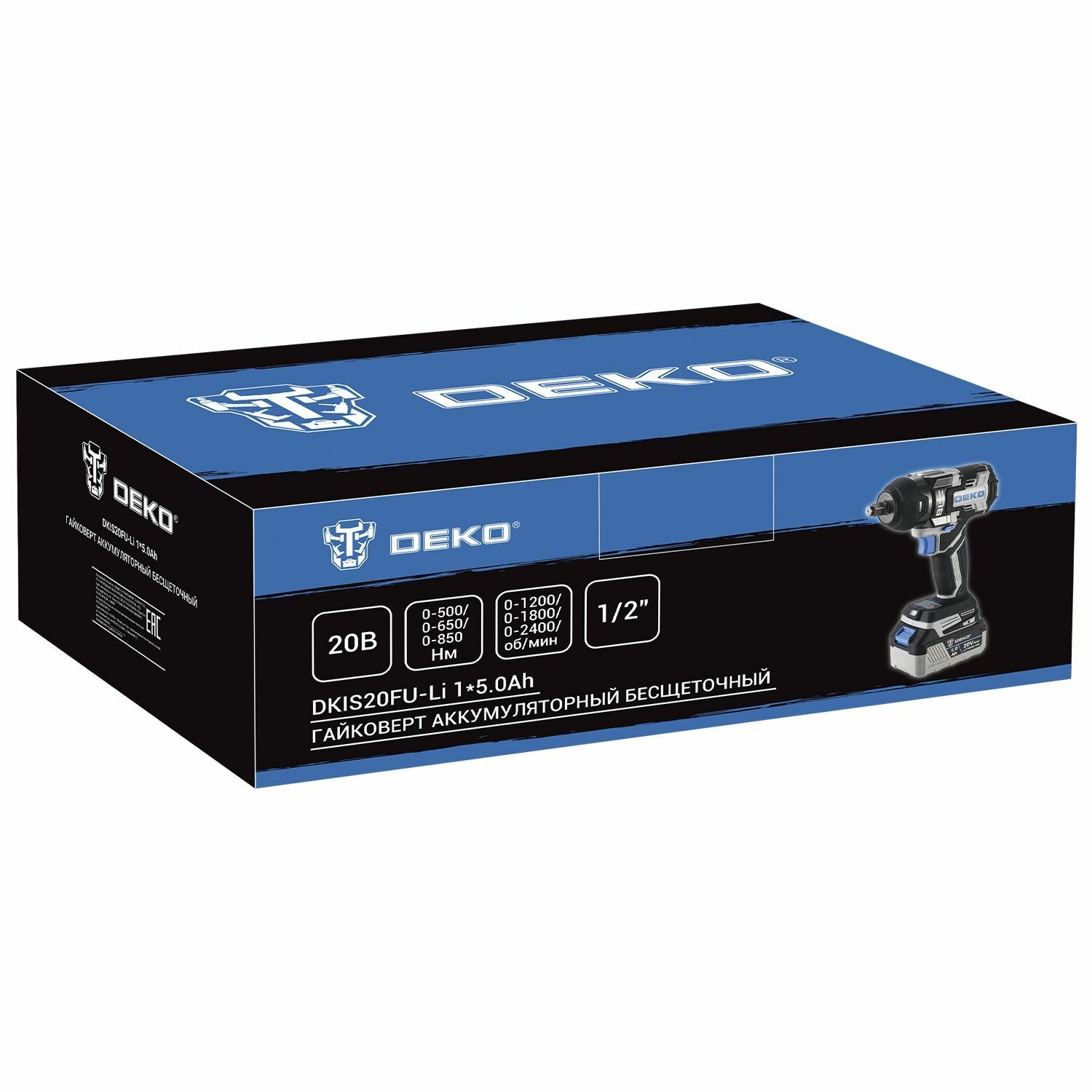 Гайковерт аккумуляторный бесщеточный DEKO DKIS20FU-Li, 20В, 1*5.0Ач, 850 Нм информация: