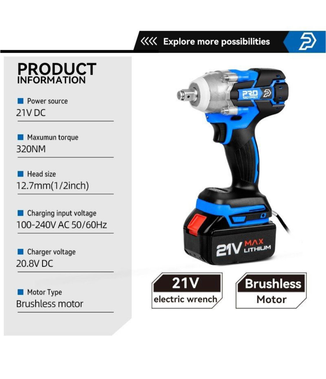 Гайковерт PROSTORMER 21В 4Ач (PTET002A) информация: