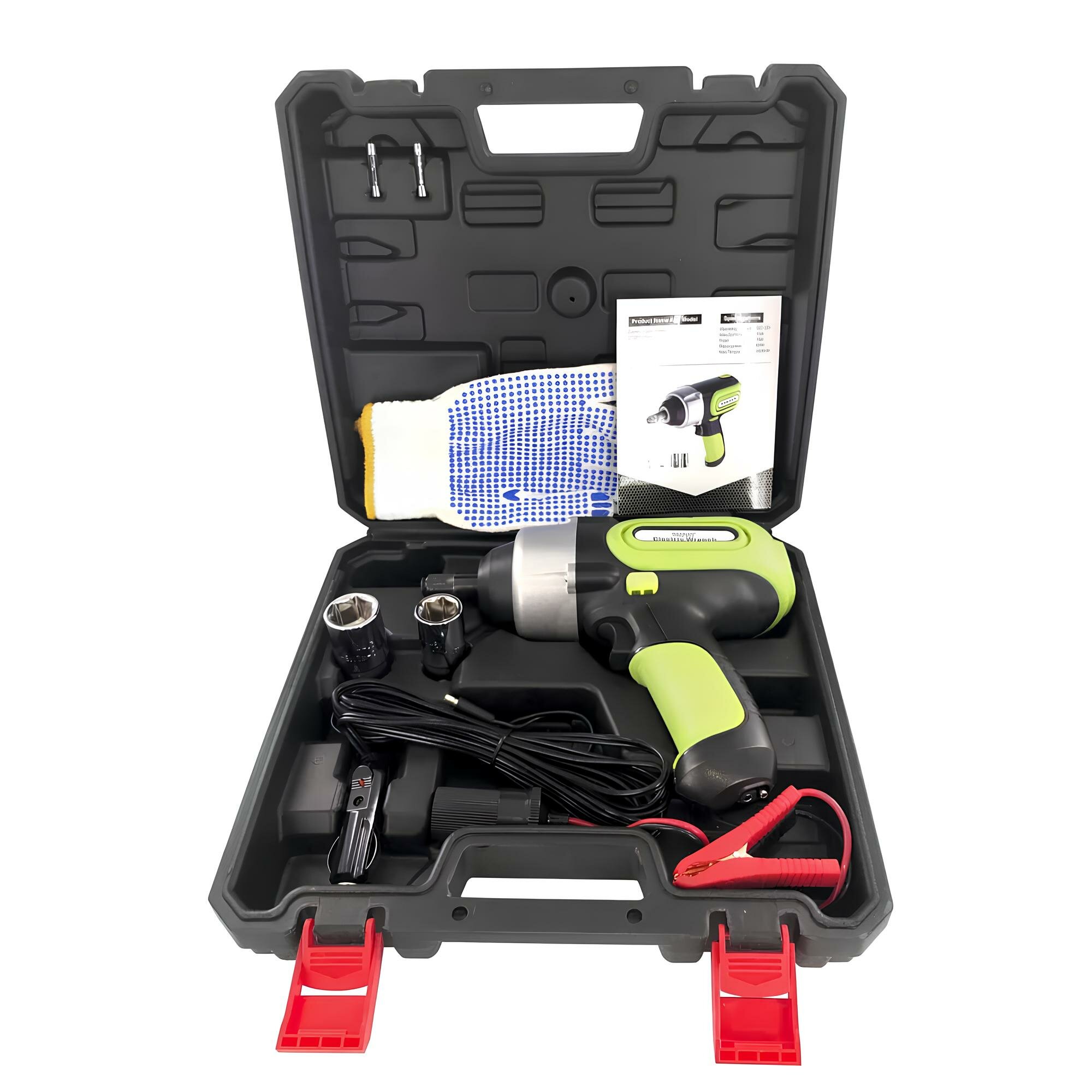 | Комплектация | Гайковерт; кейс;, Головки двусторонние 2 шт; Предохранители 2шт; Прищепки для АКБ 2 шт; Отвертка 1шт; провод питание от прикуривателя 1 шт |