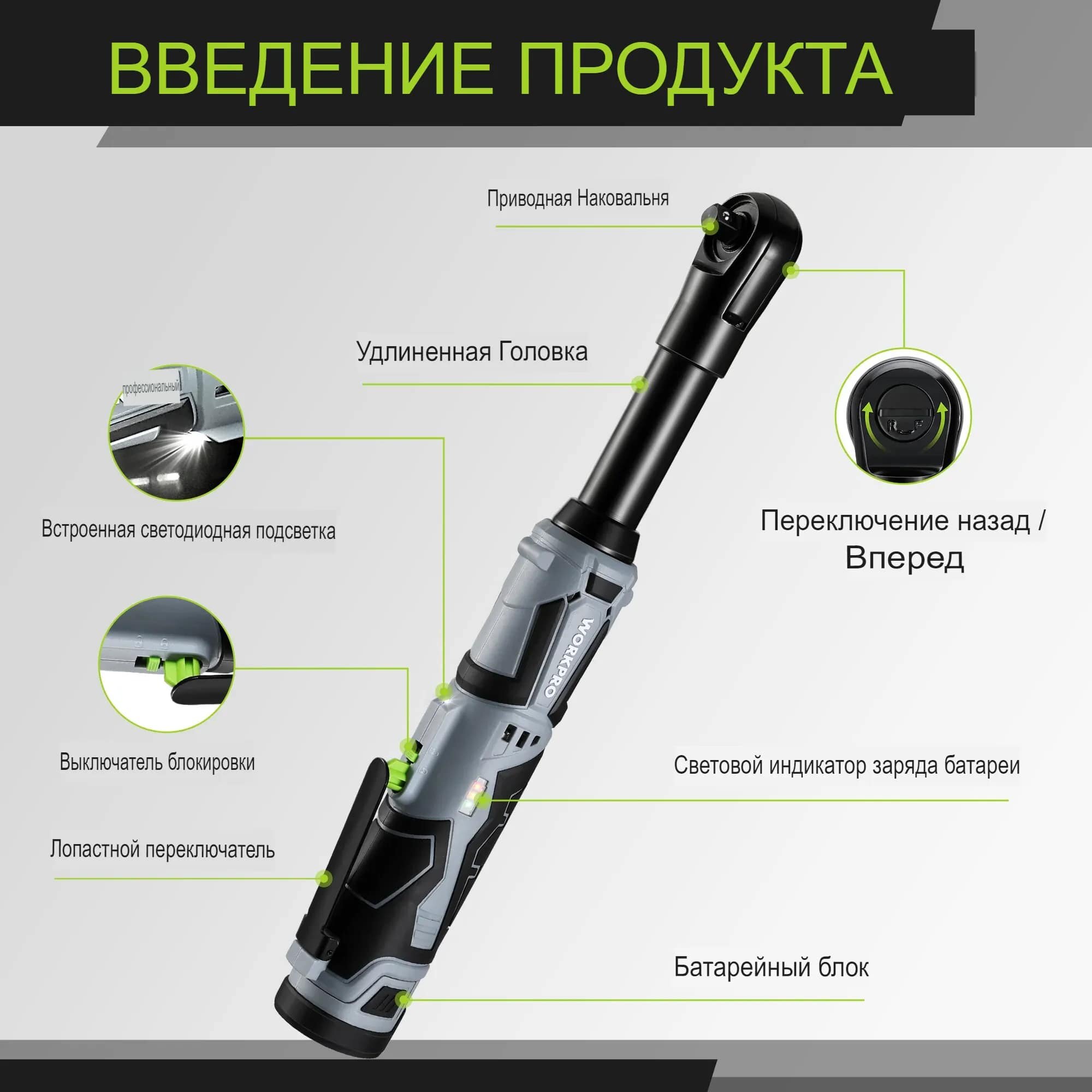Отзывы на Аккумуляторный угловой гайковерт Workpro с удлиненной головкой, с двумя аккумуляторами 12В, 2Ач, с храповым механизмом