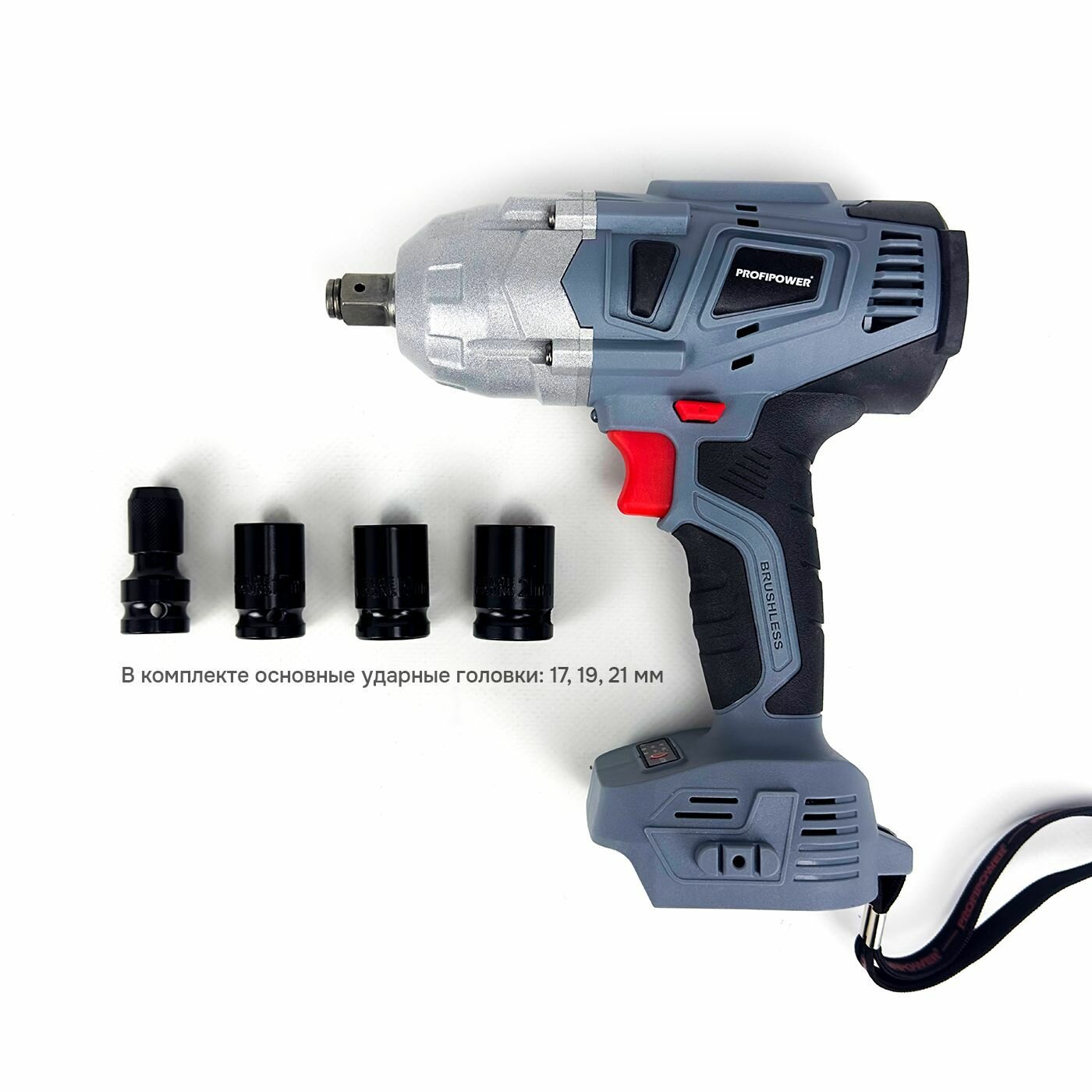 Аккумуляторный гайковерт бесщеточный ударный ProfiPower DWDTW-18V (без акб, 600Нм, набор головок 17/19/21мм, в коробке) информация:
