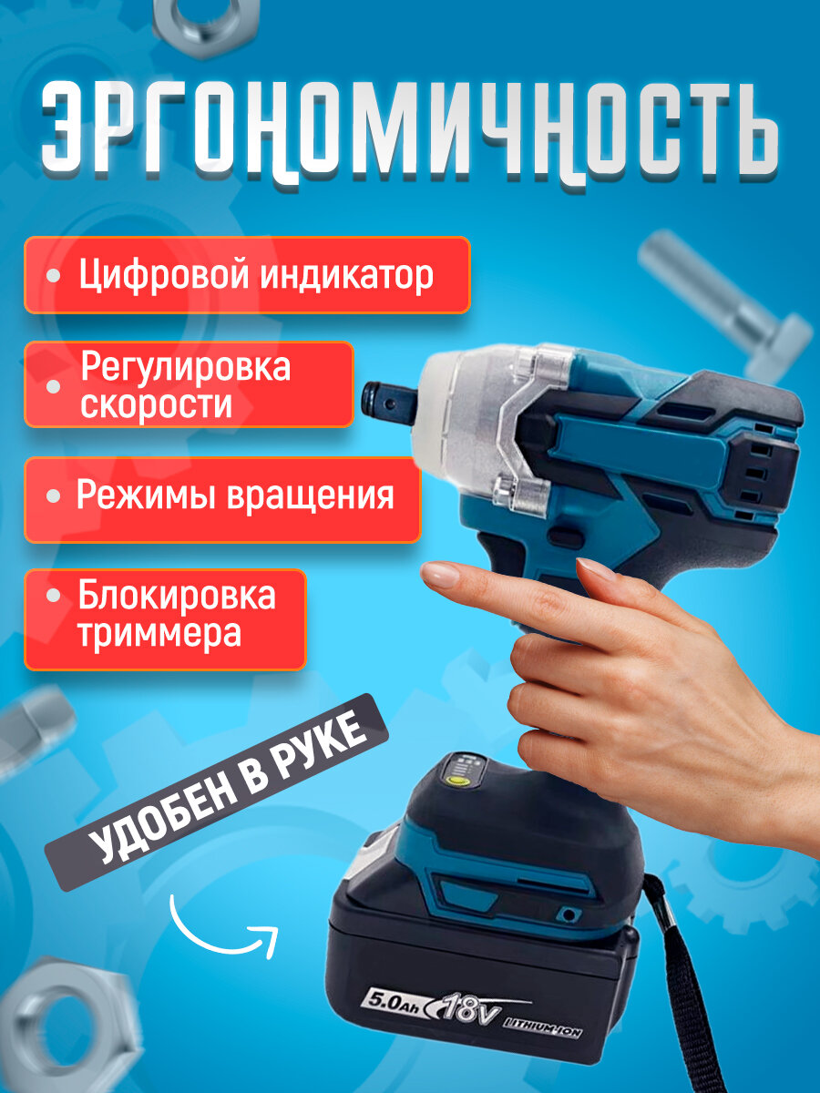 Гайковерт аккумуляторный ударный 18V, Винтоверт электрический + кейс для хранения, ЗУ, 2 аккумулятора 5 Ач информация: