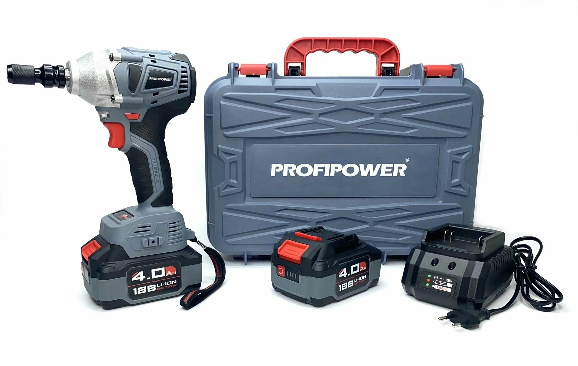 Аккумуляторный гайковерт бесщеточный ударный ProfiPower E0105 600Н/м(1акб 4Aч, набор головок, зу, бита-адаптер)