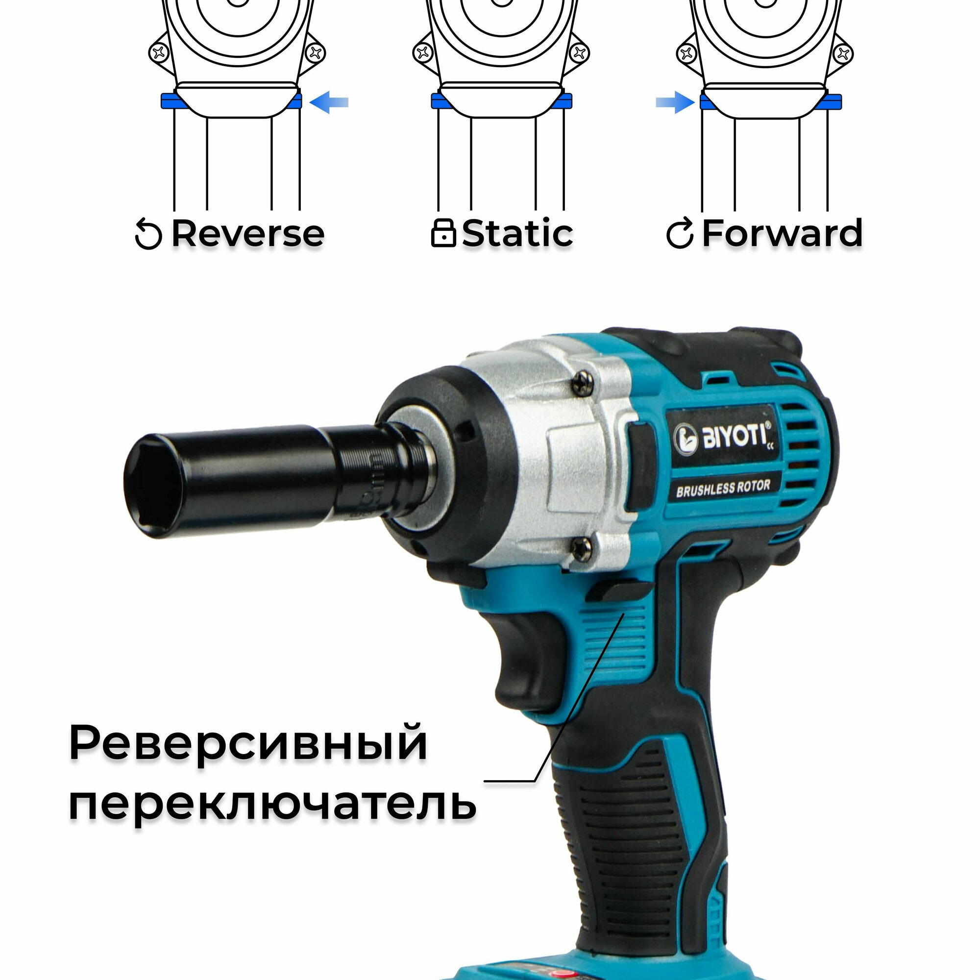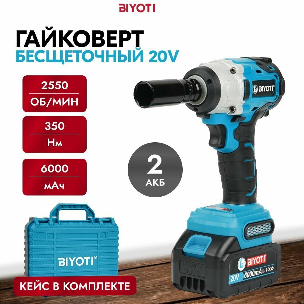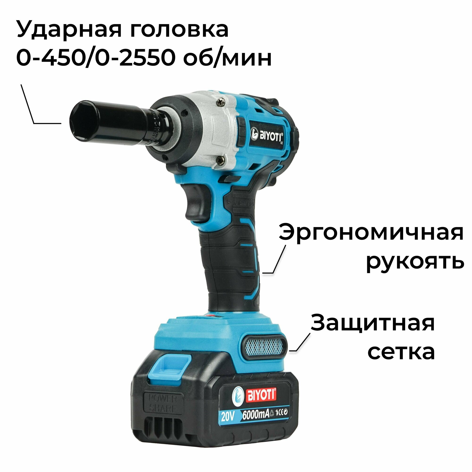 Гайковерт аккумуляторный ударный бесщеточный 18В, 350 Нм, BIYOTI / Винтоверт информация: