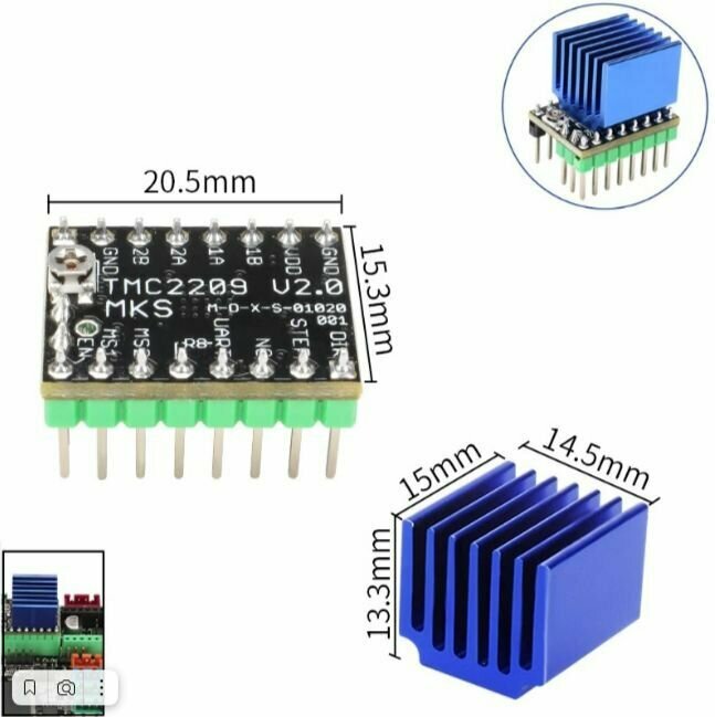 | Дополнительная информация | Драйвер TMC2209 2.0. - 1шт, радиатор - 1шт |