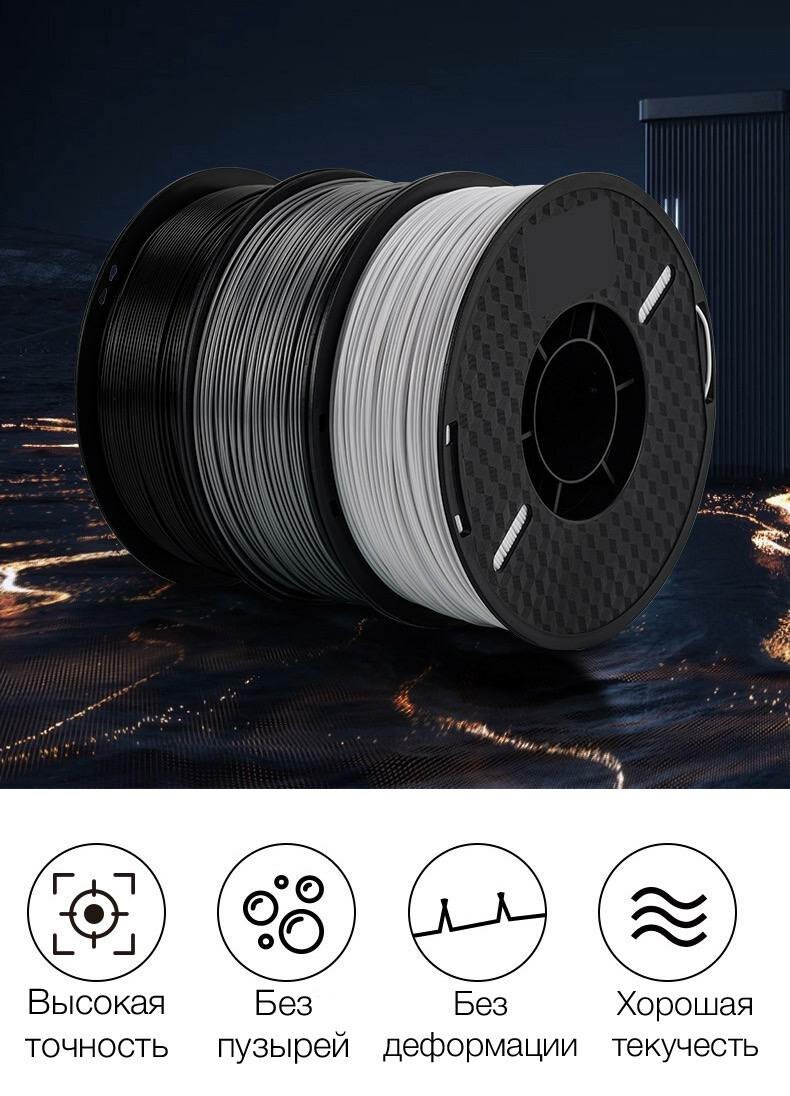 10 цен на Филамент KINGROON ABS для 3D принтера 1.75мм, черный 1 кг.