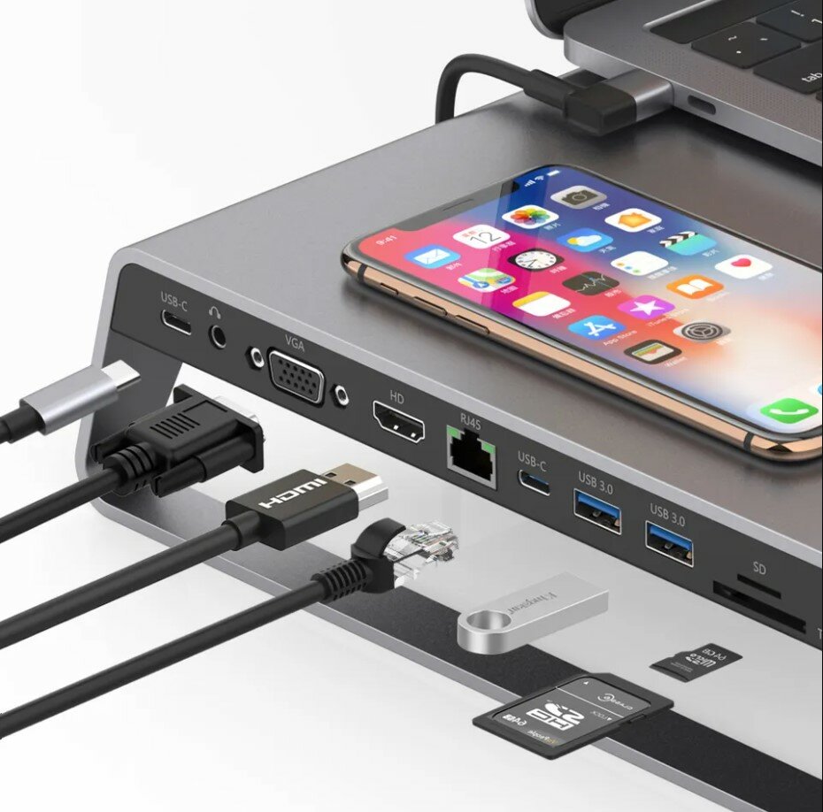 Отзывы на Мультифункциональная металлическая подставка док-cтанция для ноутбука (11 в 1) с беспроводной зарядкой