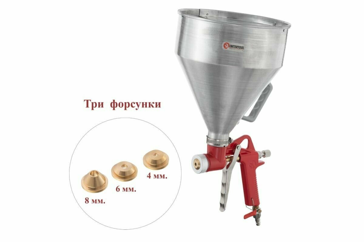 10 цен на Распылитель штукатурный пневматический, три форсунки 4;6;8мм, В/Б металлический, 6000мл, 3-6 атм INTERTOOL PT-0401