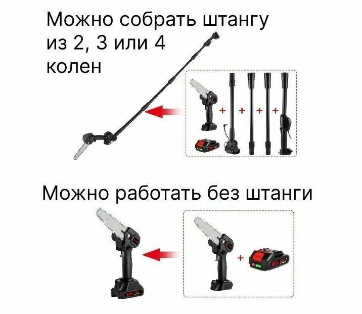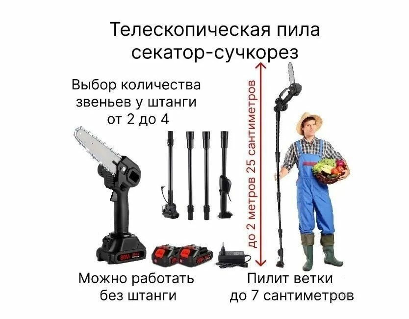 Высоторез пила цепная секатор - сучкорез аккумуляторный 21В, 2 АКБ в комплекте телескопический информация: