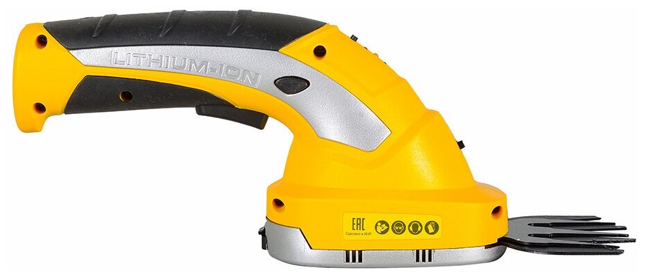 | Комплектация | Триммер-кусторез в сборе - 1 шт. Аккумулятор - 1 шт. Зарядное устройство - 1 шт. Лезвие для работы в режиме кустореза - 1 шт. Лезвие для работы в режиме стрижки газона - 1 шт. Руководство по эксплуатации - 1 экз. Упаковка |