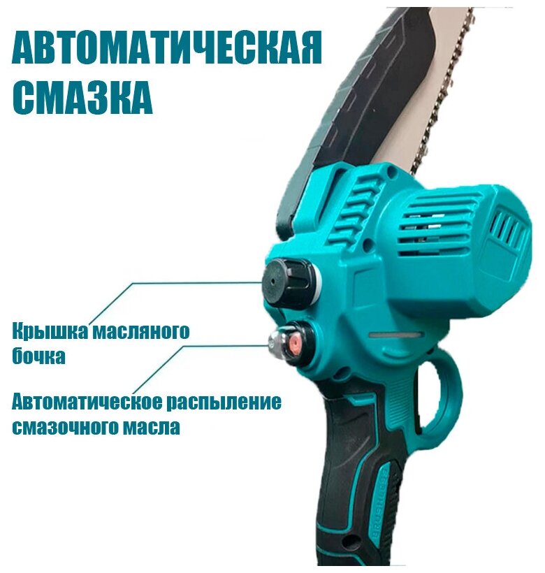 10 цен на Электропила с направляющей 6 дюймов (15,24см.), с 2-мя аккумуляторами, с встроенной мсленкой в переносном пластиковом Боксе.