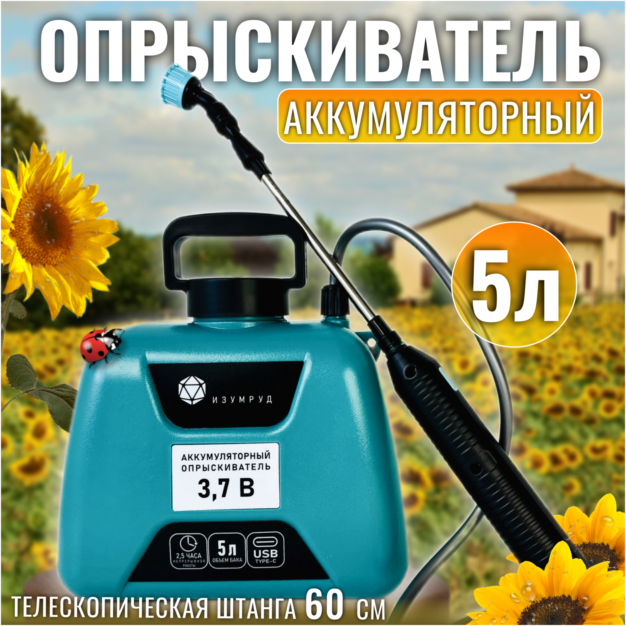 Опрыскиватель садовый аккумуляторный изумруд 5 литров Li-ion аккумулятор информация: