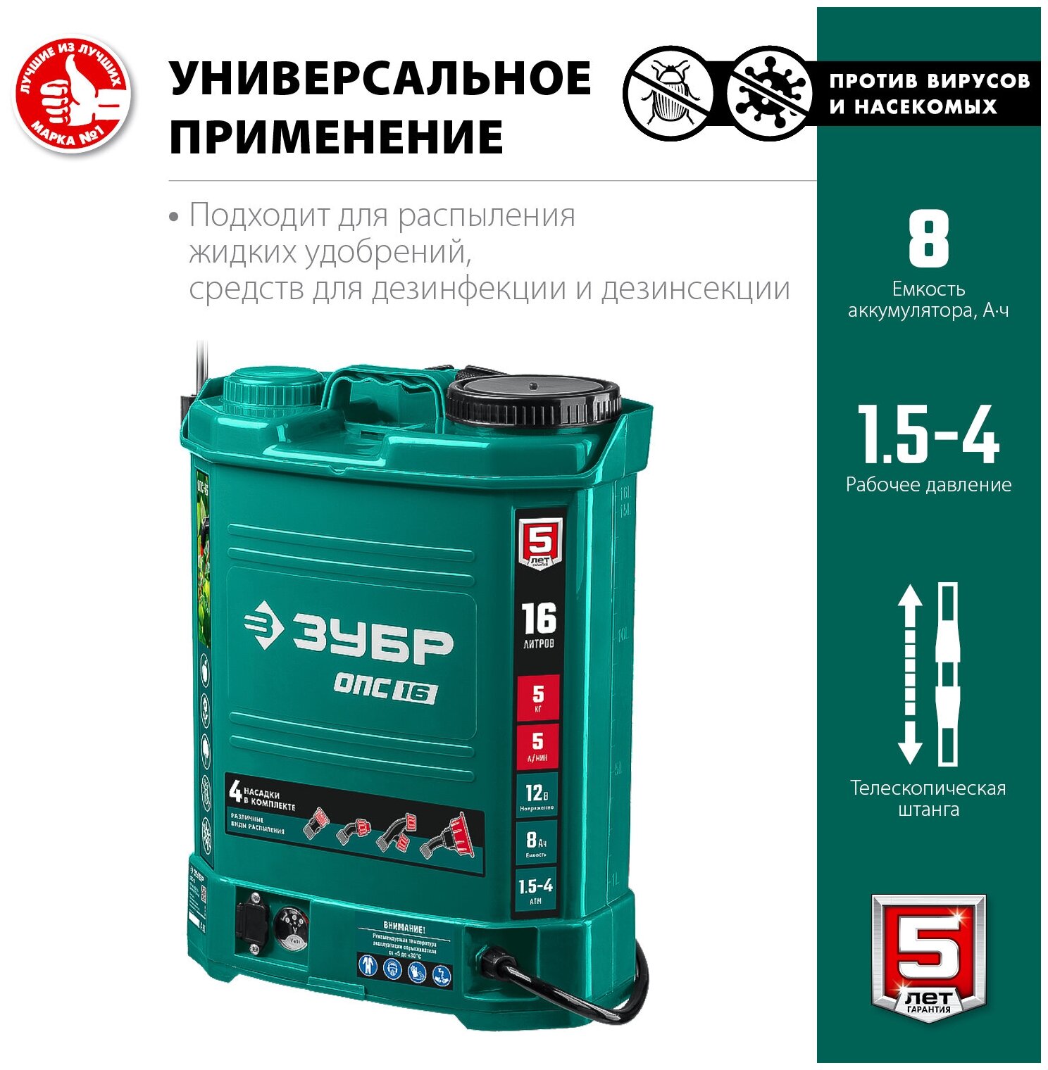ОПС-16 аккумуляторный опрыскиватель ЗУБР, 16 л, 12 В, 8 Ач информация: