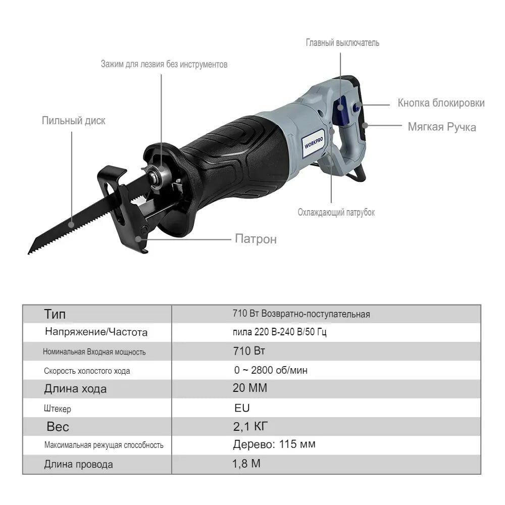 Сабельная пила WorkPro, электрическая информация: