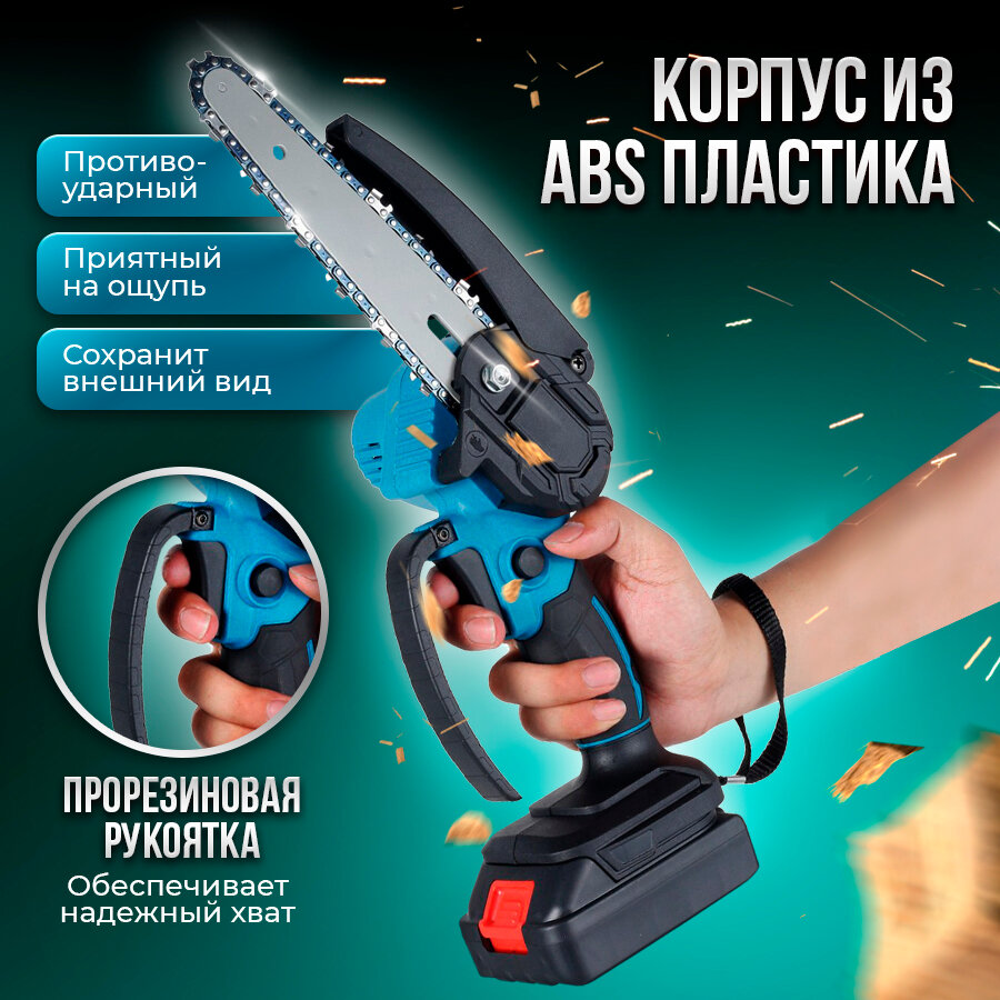 Цепная мини пила аккумуляторная ручная садовая, Портативная цепная аккумуляторная бензопила