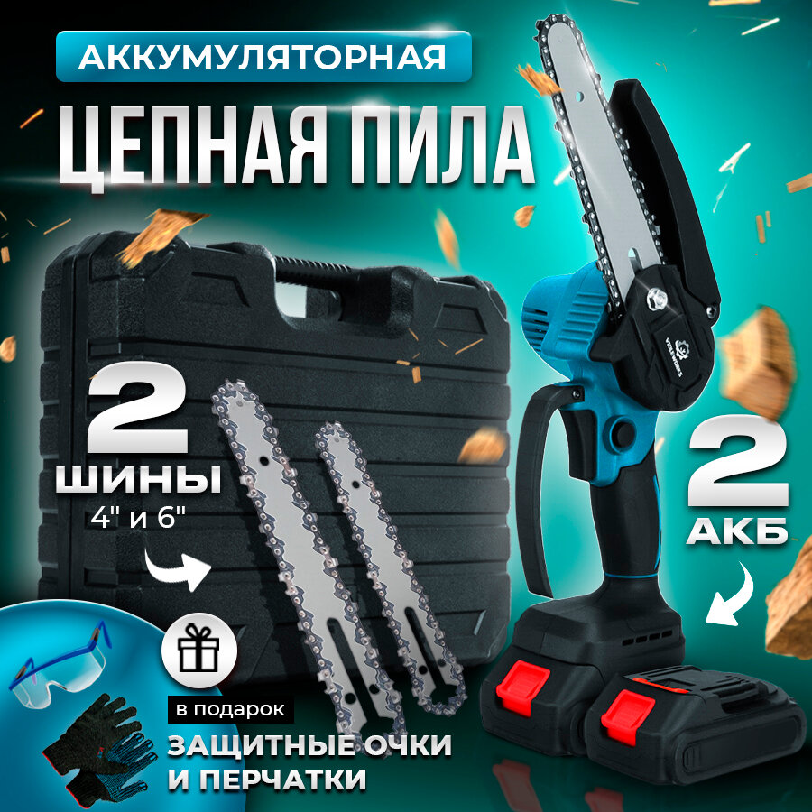 Пила цепная электрическая с 2 аккумуляторами информация: