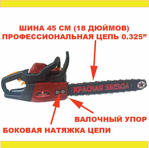 Бензопила "Комбат" Красная Звезда. Лёгкий старт, шина 45см, инерционный тормоз цепи, большие баки. информация: