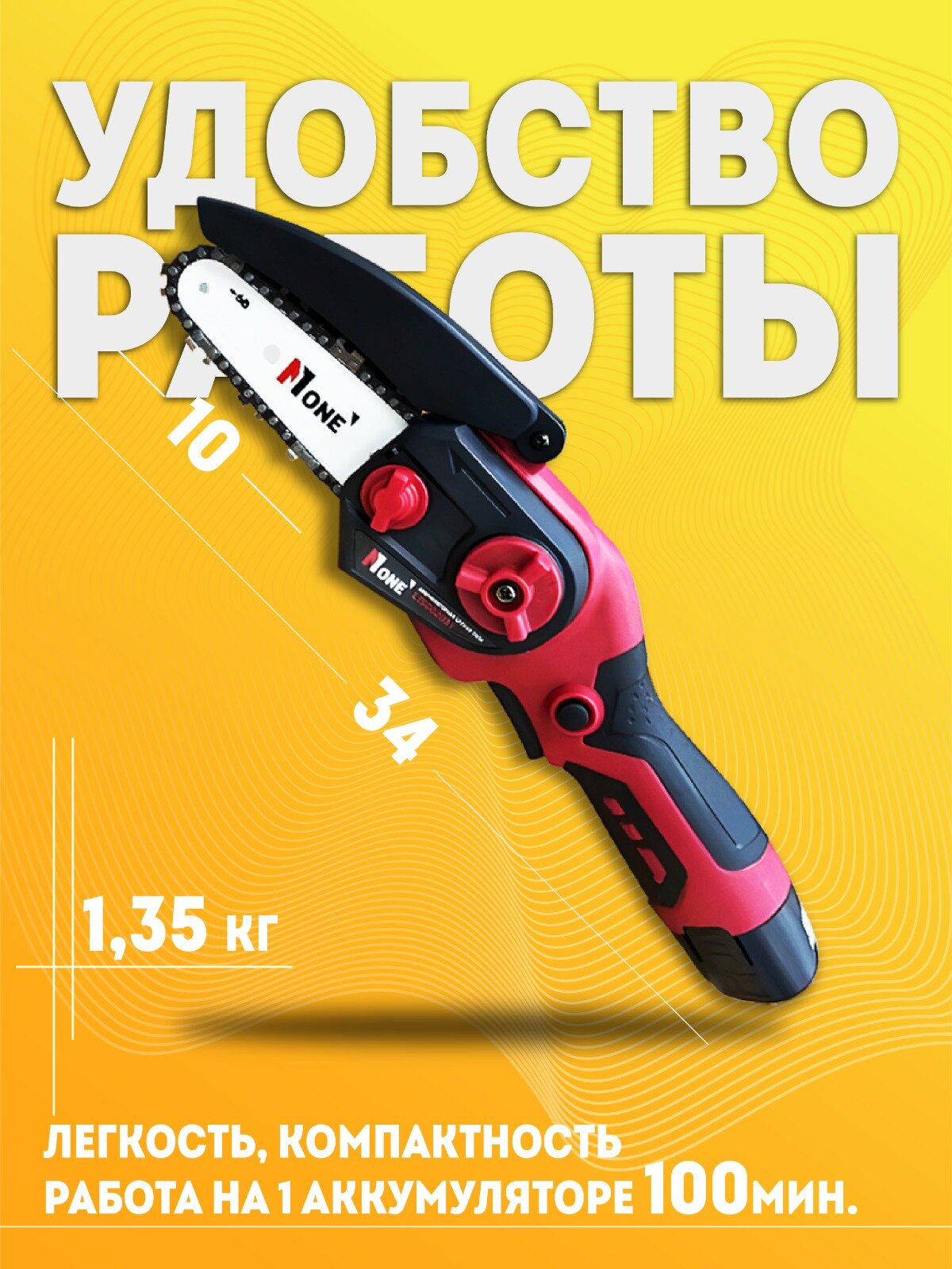 10 цен на Пила цепная аккумуляторная мини Number One L15002031, 1 аккумулятор, з/у, тормоз цепи.