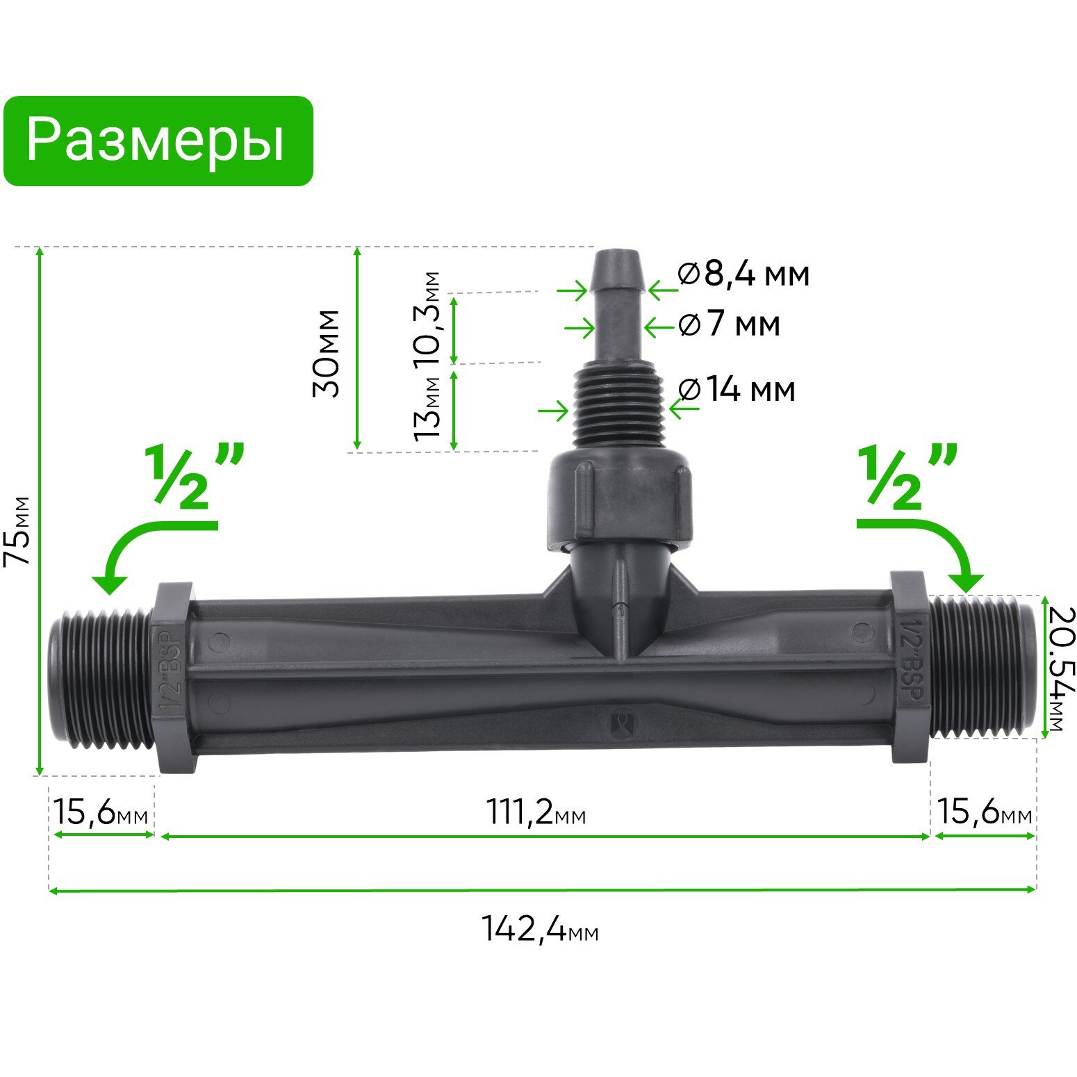 Отзывы на Инжектор Вентури, 1/2"(с подающим шлангом), для внесения удобрений поток 0,29-0,81 м3/ч при 0,7-9,5 bar, мощность всасывания 3-37 л/ч