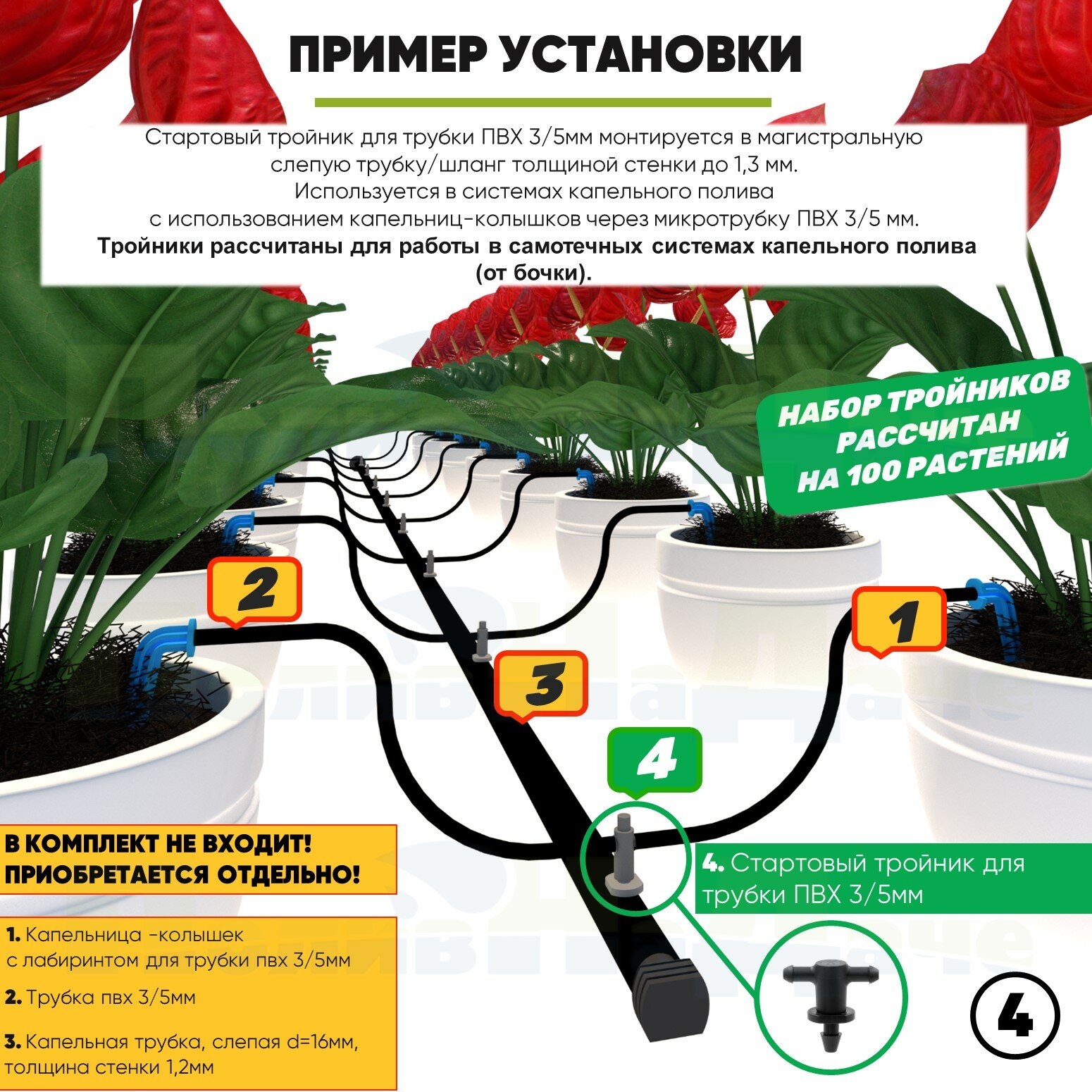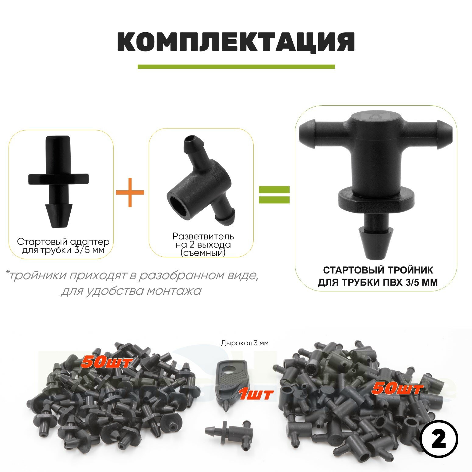 | Комплектация | Стартовый тройник для трубки ПВХ 3/5мм |