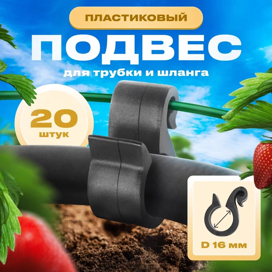 Подвес крючок для пластиковой трубки капельного полива 16мм, 20шт информация: