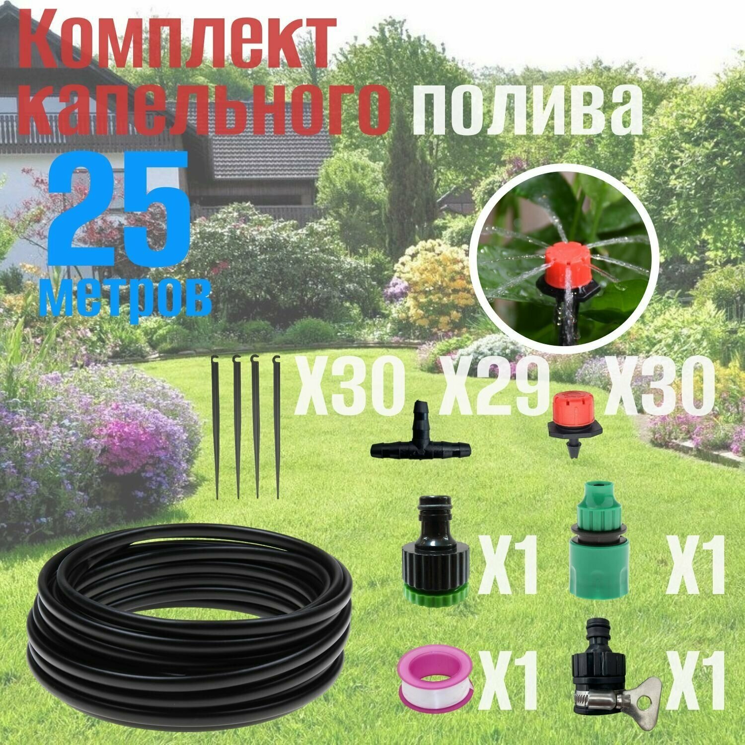 Капельный полив система 25м для теплицы, капельницы 30шт, комплектов фитингов для подачи воды информация: