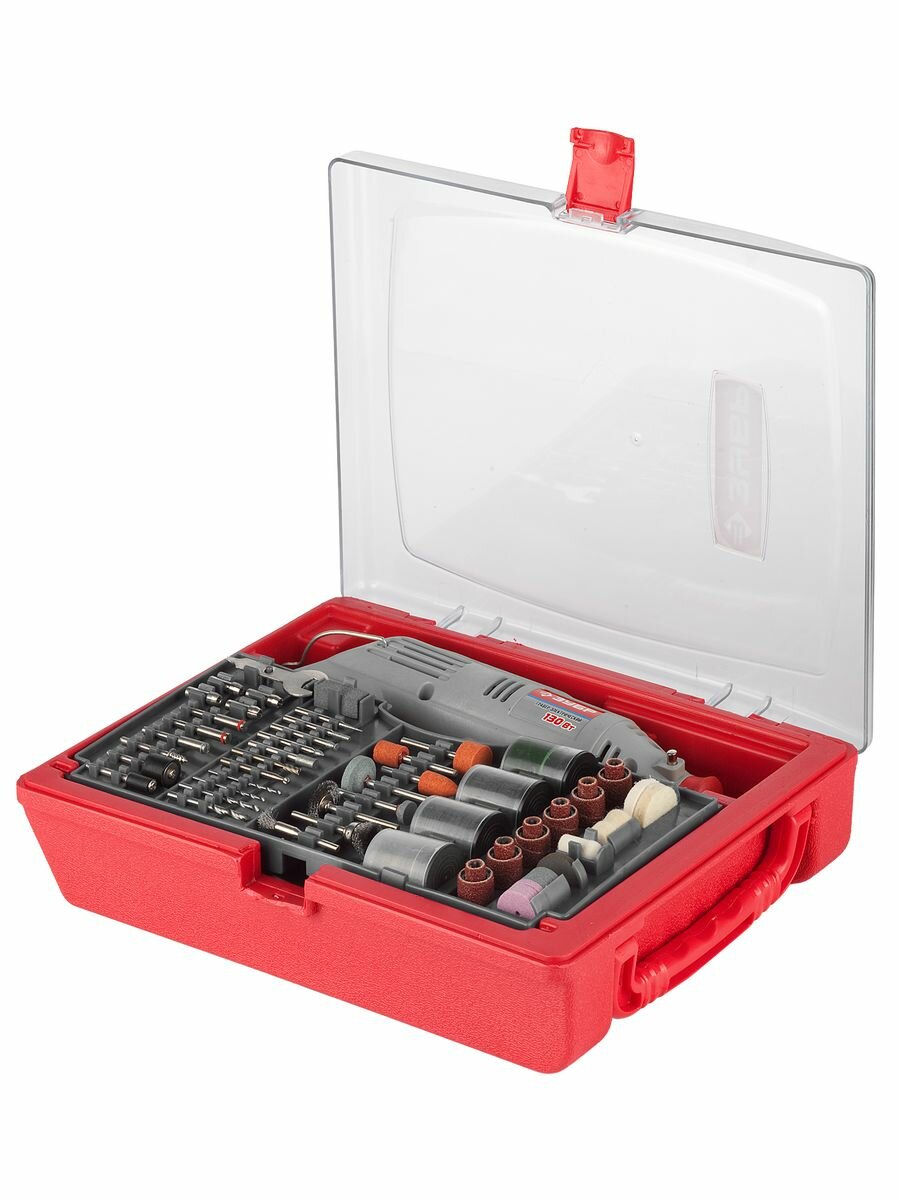 Гравер с набором мини-насадок в кейсе, 242 предмета ЗУБР ЗГ-130ЭК H242 + рабочие перчатки