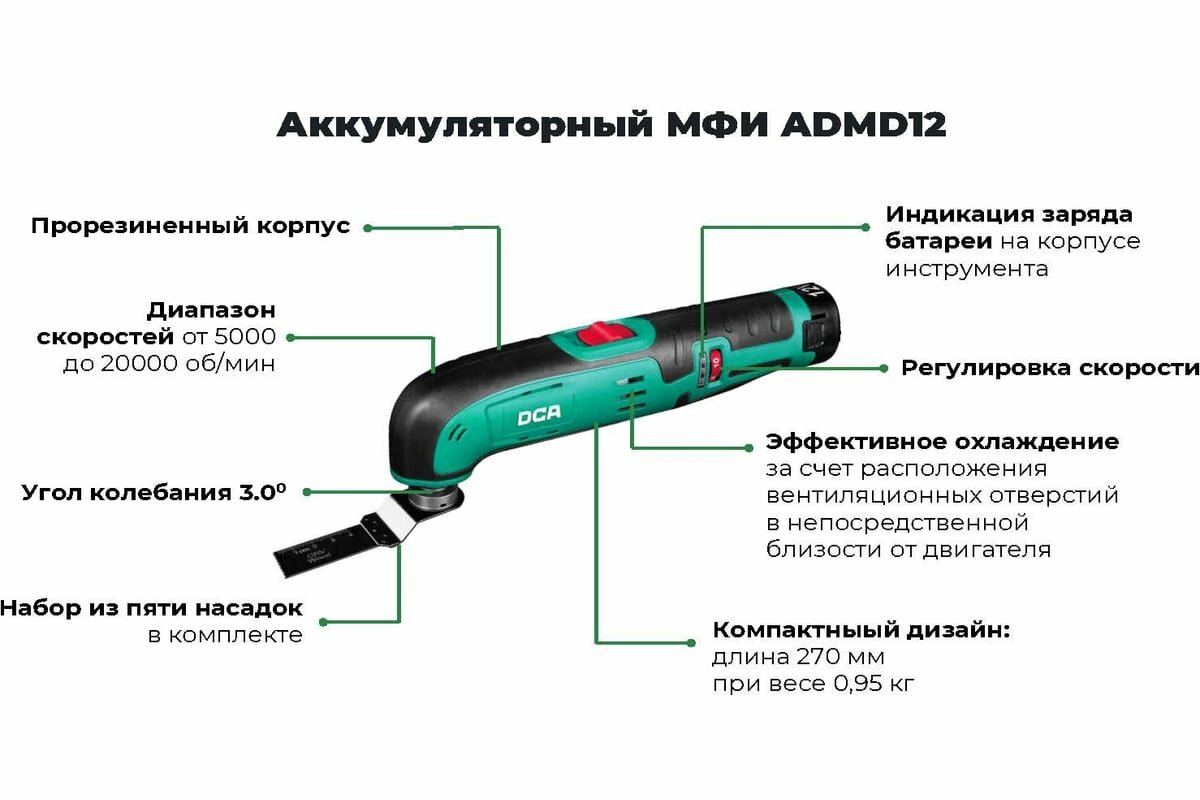 DCA аккумуляторный многофункциональный инструмент ADMD12 информация: