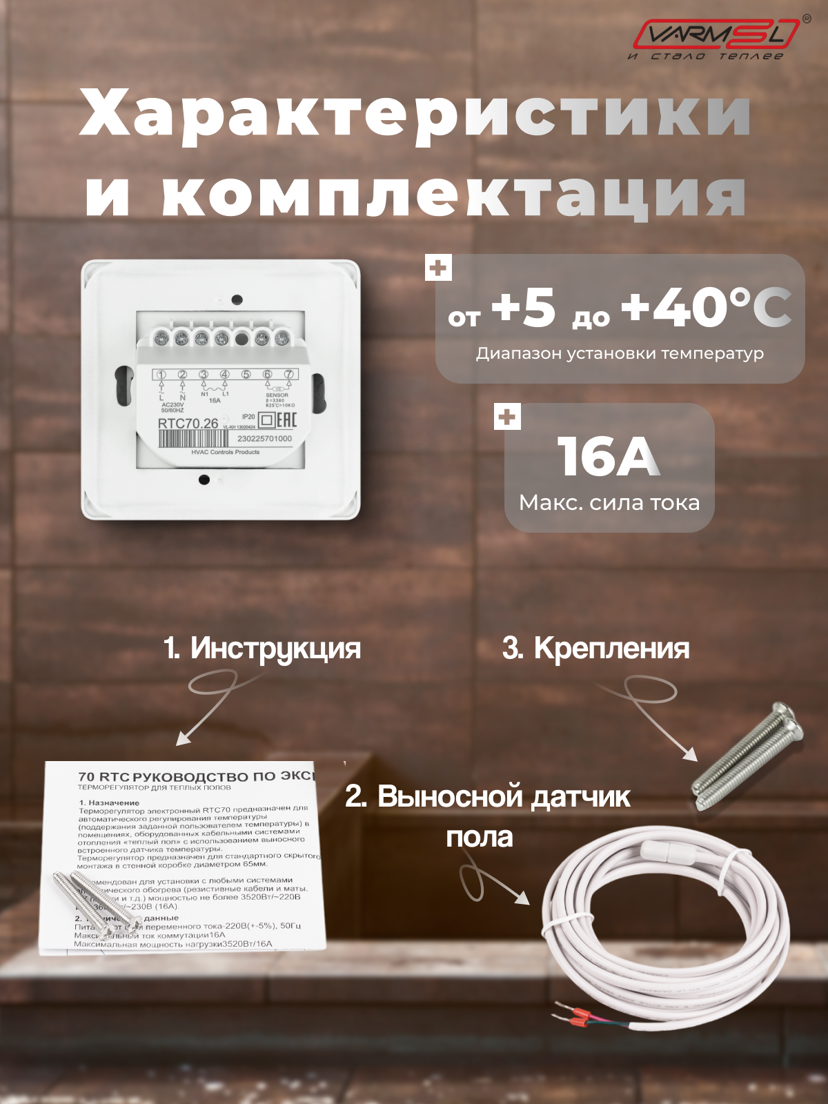 Терморегулятор/термостат Varmel RTC 70.26 черный информация: