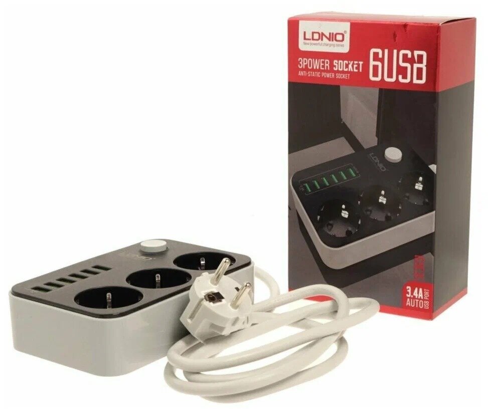 10 цен на Сетевой фильтр удлинитель на 3 розетки и 6 USB портов с кнопкой включения 1.8 метра