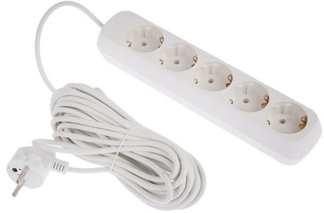 Отзывы на Luazon Lighting Удлинитель 5 розеток, 10 м, 10 А, 2200 Вт, ПВС 3х0.75 мм2, с з/к, белый