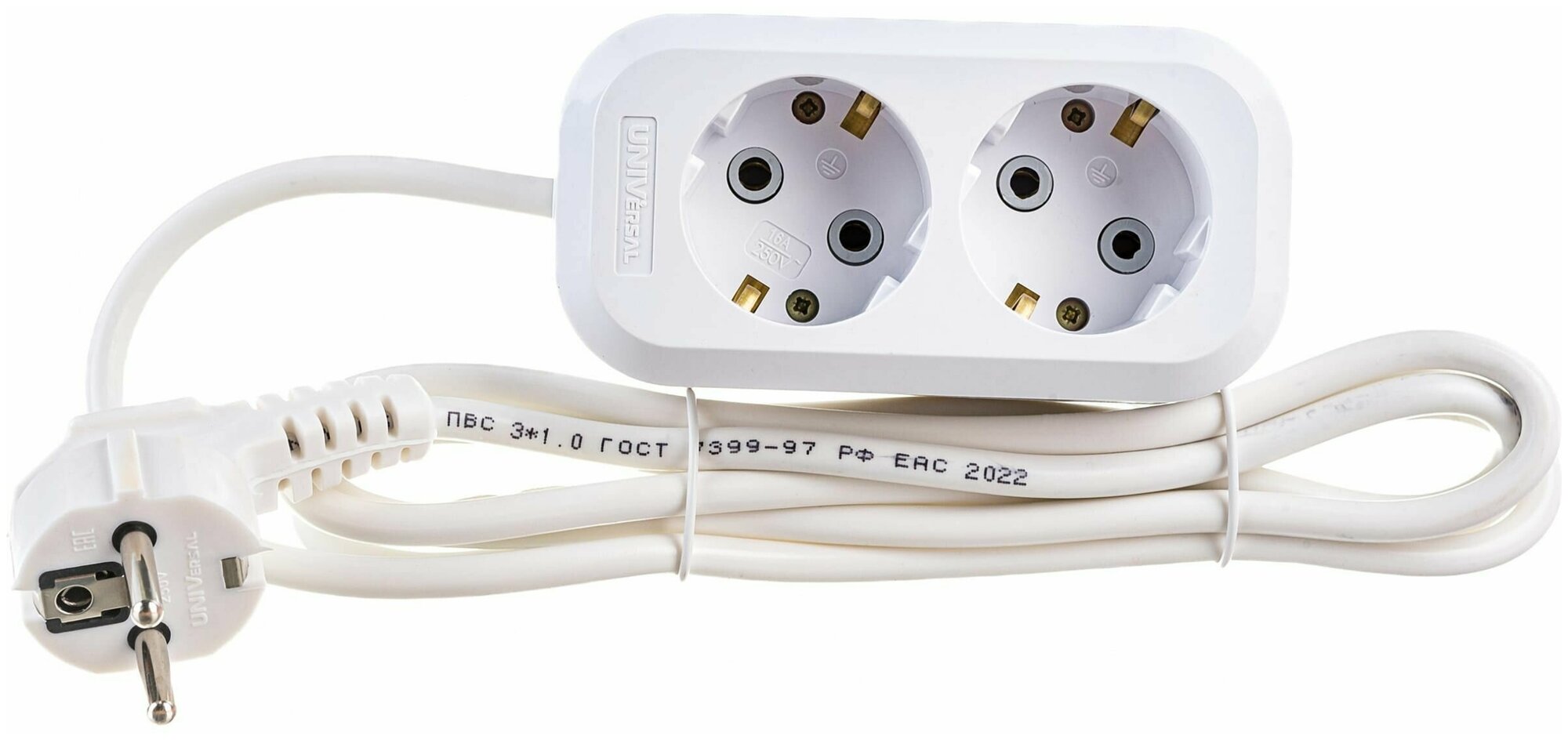 Удлинитель UNIVersal У6-639М (639М-02), 3 розетки, 2 м, б/з, 6А / 1300 Вт