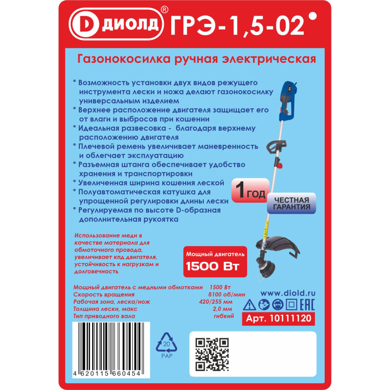 Газонокосилка Диолд ГРЭ-1,5-02 информация: