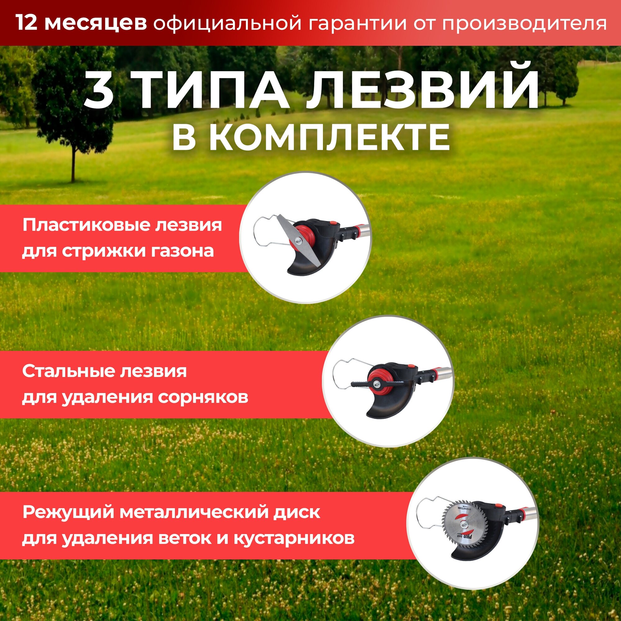| Дополнительные функции | аккумулятор в комплекте / кусторез/сучкорез / плавный запуск двигателя |