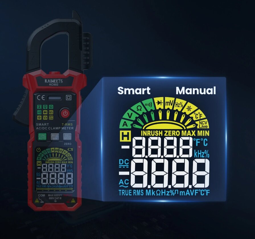 Профессиональные токовые цифровые клещи KAIWEETS KC602 True RMS до 600 А. 20 функций. информация: