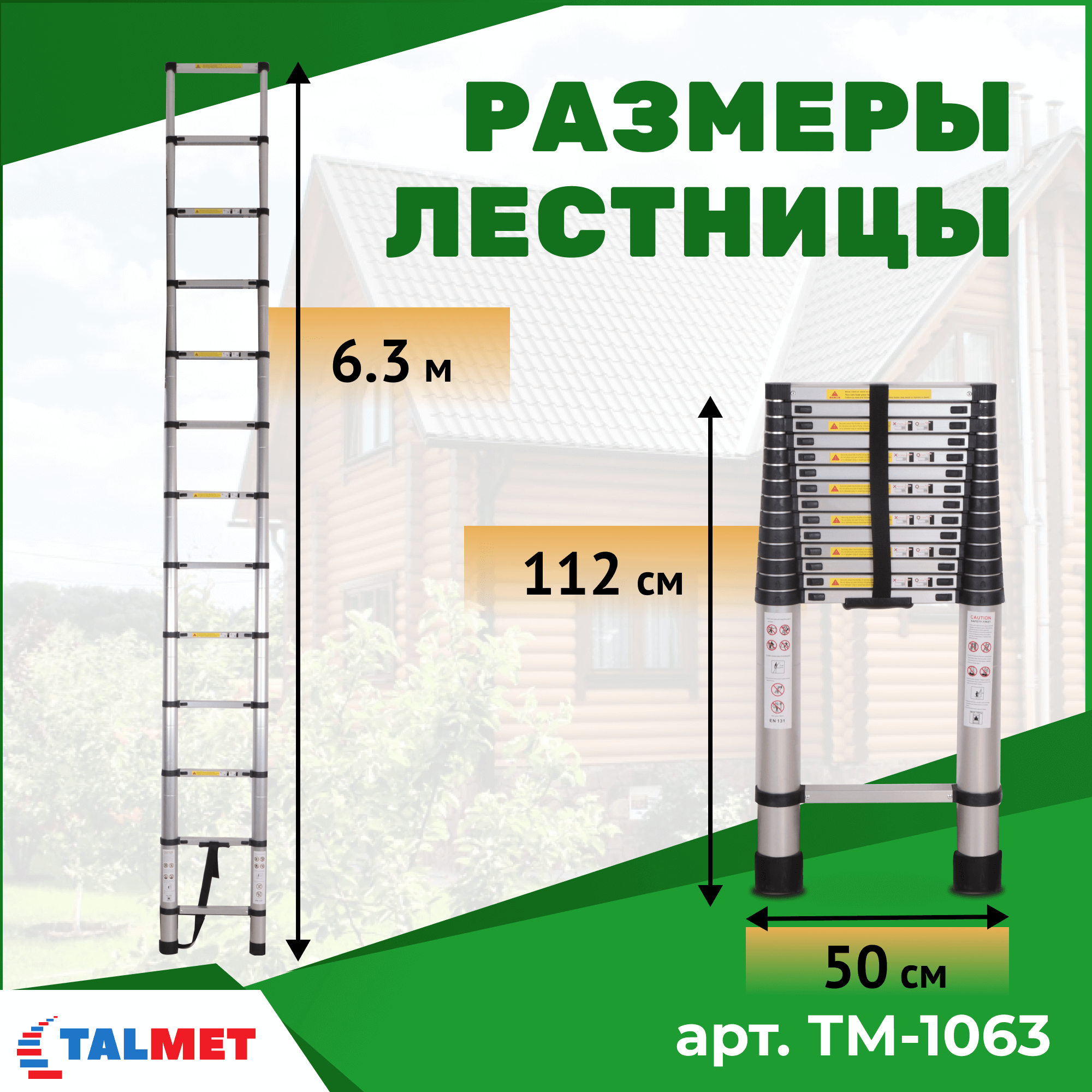 Лестница телескопическая 6,3 м TALMET PROF TM-1063 информация: