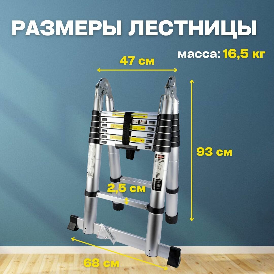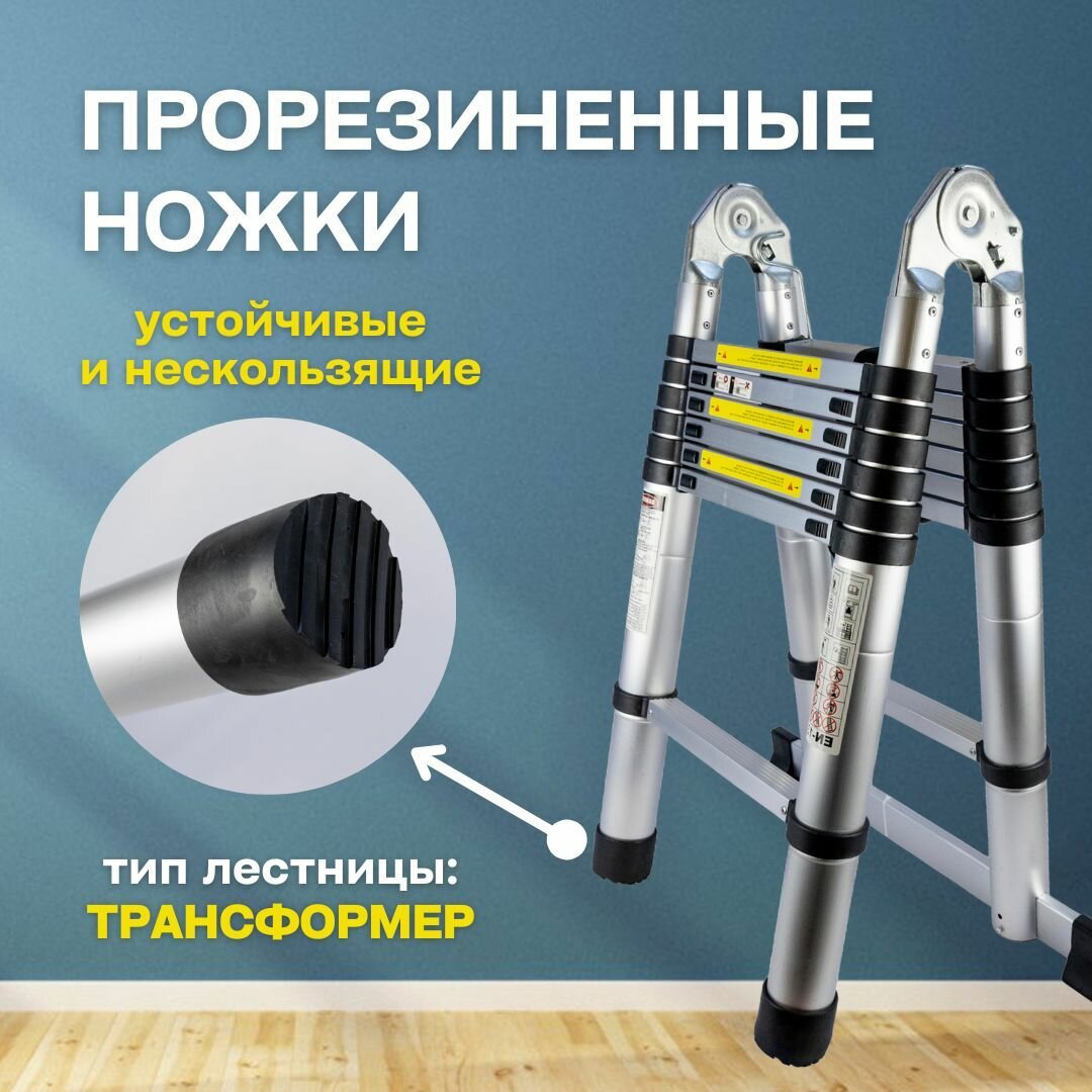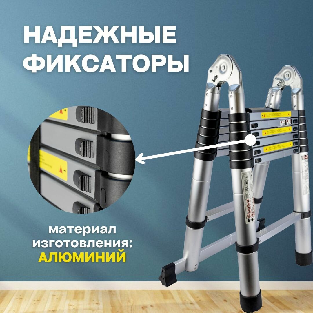 Лестница-стремянка телескопическая алюминиевая 2 секции, 4.4м. информация: