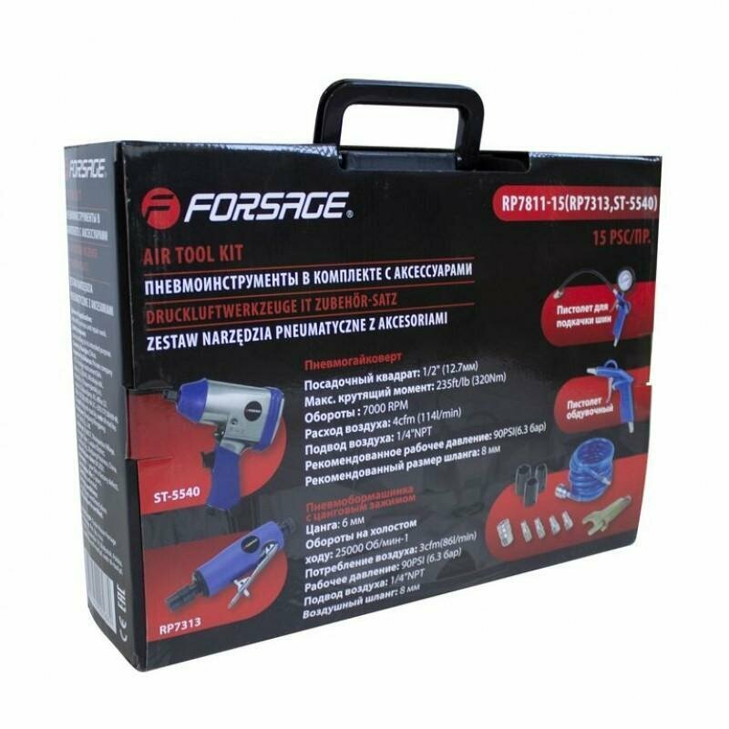 Пневмогайковерт Forsage 1/2 c комплектом инструмента в кейсе информация: