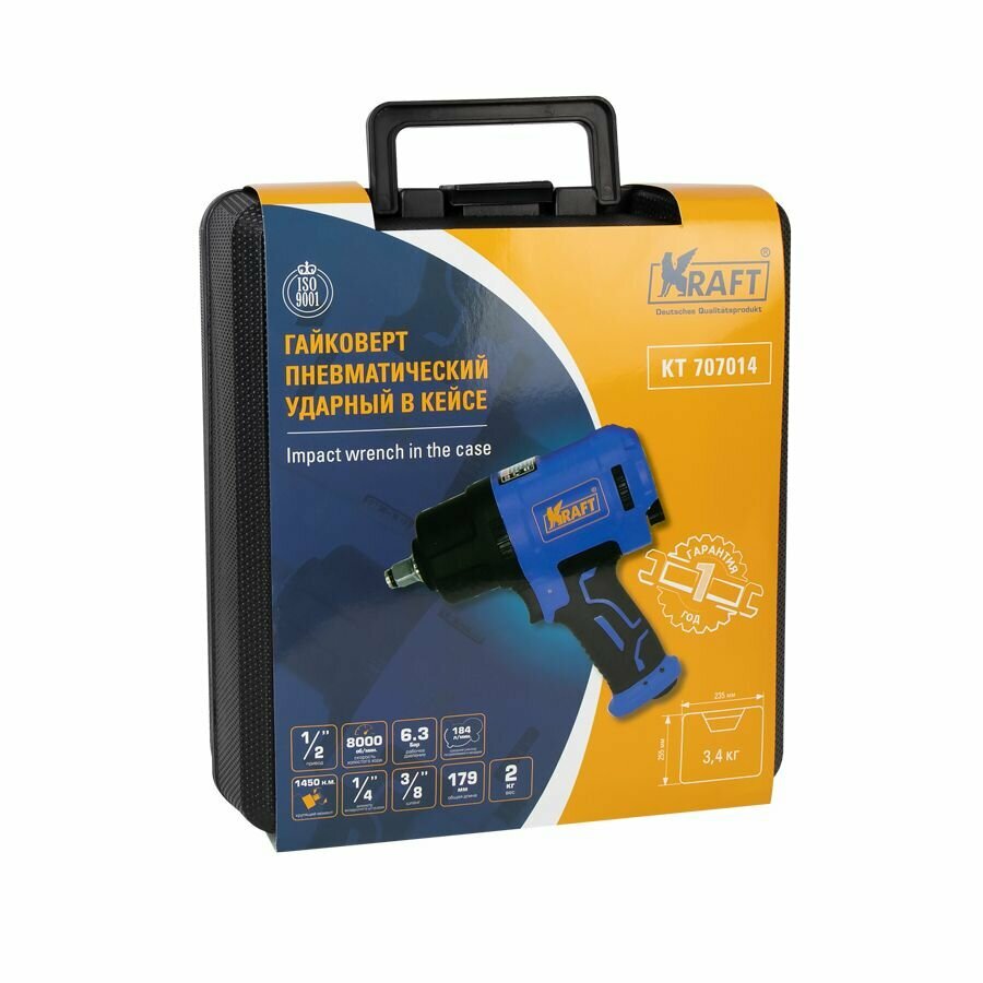 KRAFT Гайковерт пневматический ударный 1/2 1450 н.м. (в кейсе с головками) KT 707014 16 940 ₽