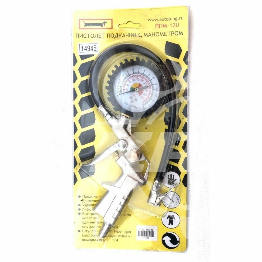 Пистолет для накачки шин 16 Атм (стрелочный манометр, шланг) информация: