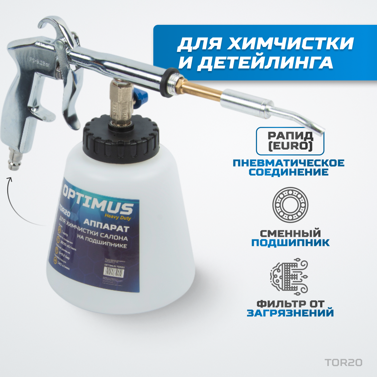 | Комплектация | Пистолет торнадор для химчистки пневматический OPTIMUS HD TOR20 |