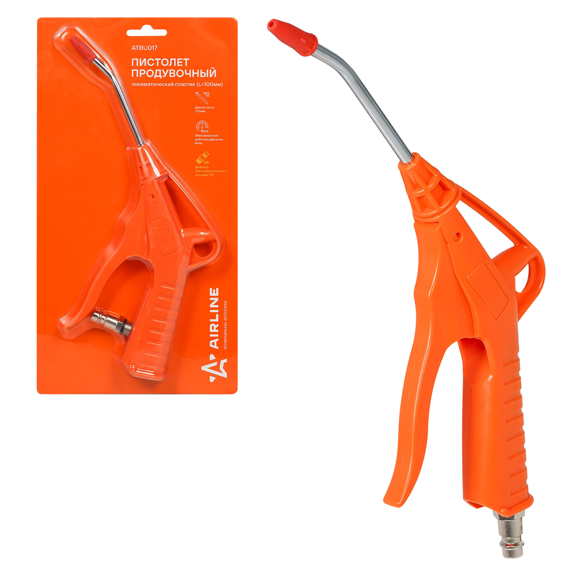 Пистолет продувочный пневматический пластик (L=100мм) (AIRLINE) информация: