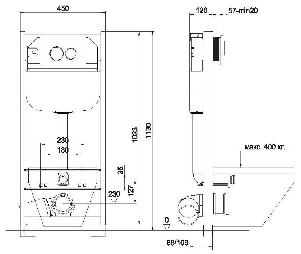 Отзывы на Инсталляция Aquanika Basic 10.702.450.02.10 для подвесного унитаза, клавиша(хром), крепеж, шумоизоляция 113x45x12см