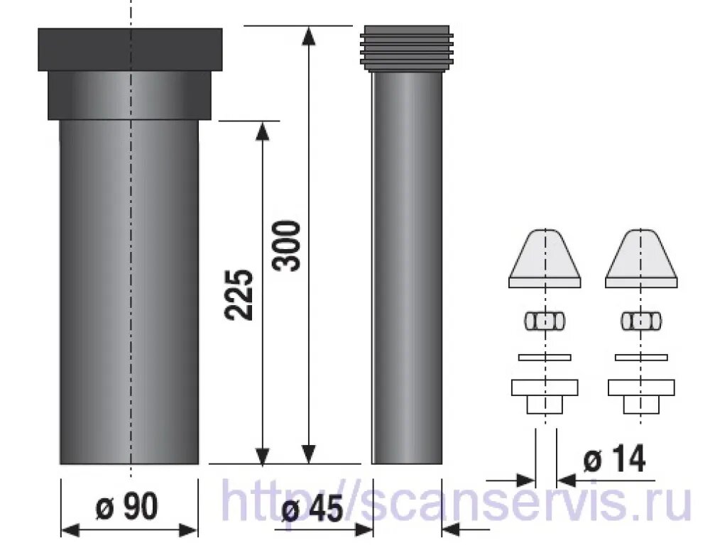 Впускной соединительный патрубок для подвесного унитаза инсталляции с уплотнением Ф45/300мм Sanit 37105K00 информация: