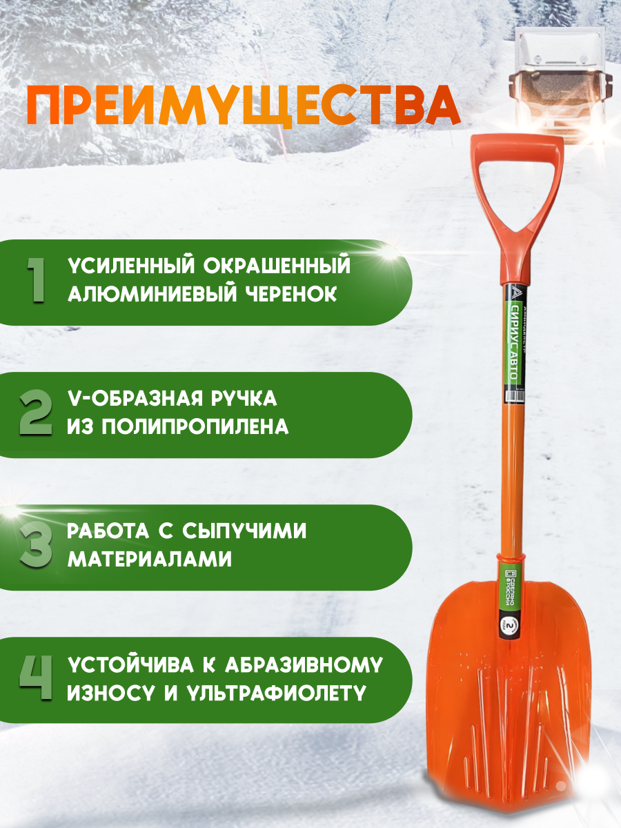 Лопата снеговая автомобильная Амбидекстр Сириус информация: