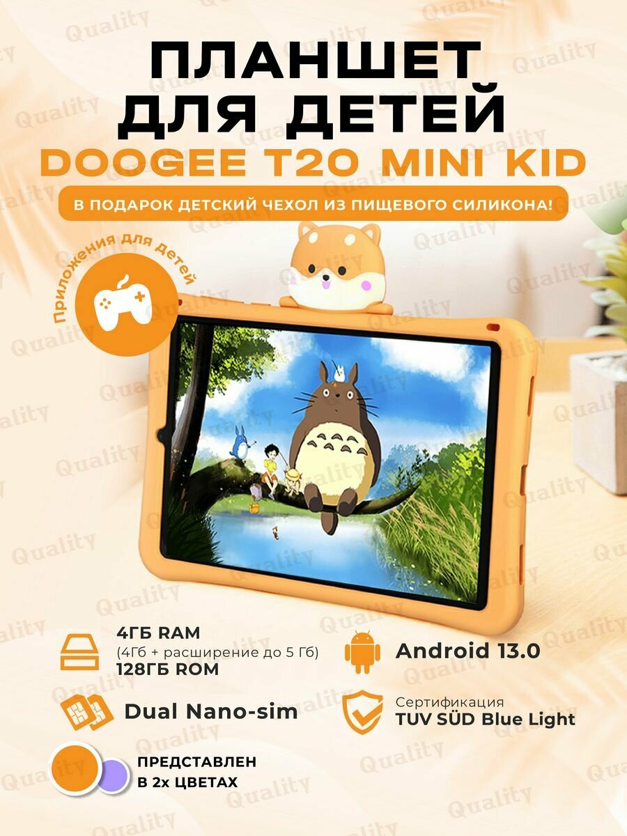 10 цен на Планшет T20 mini kid 8.4" 4(+5)ГБ+128ГБ 1.6ГГц черный, оранжевый чехол