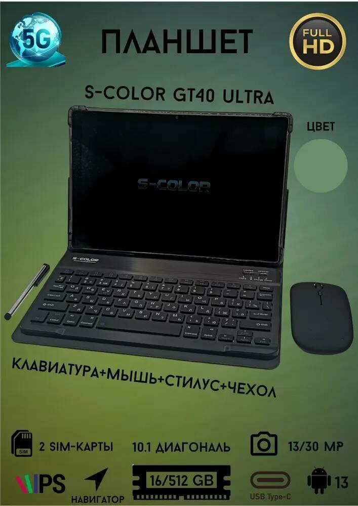 10 цен на Планшет S-COLOR GT40 Ultra с 4-х ядерным CPU 16/512GB WI Fi "micro-SD " (Sim) андроид 13 / Для девушек: зелёный, фиолетовый, оранжевый